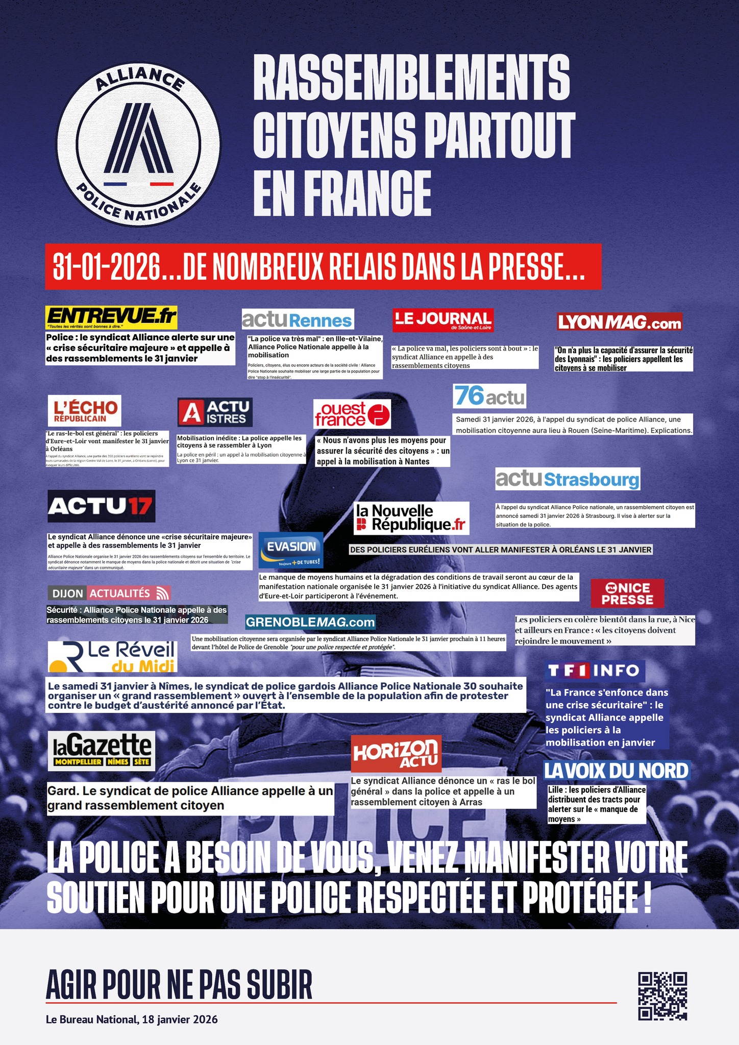 👉 Mobilisation citoyenne nationale : 24 villes mobilisées le 31 janvier 2026 à 11h00.